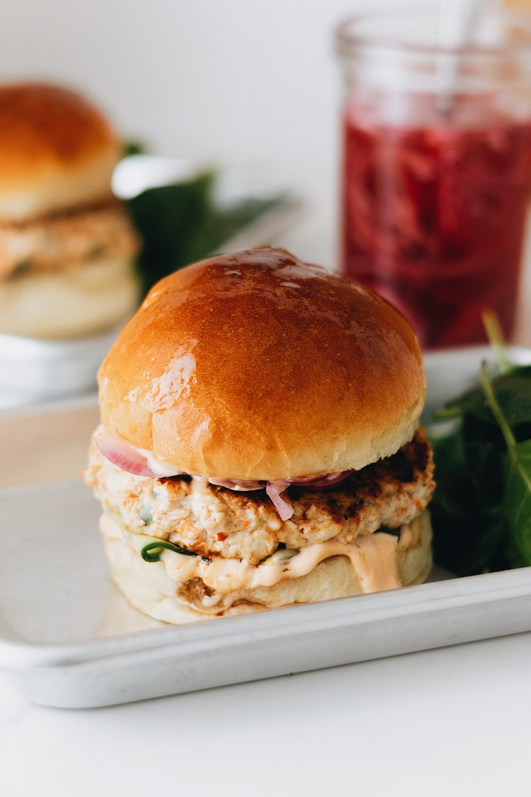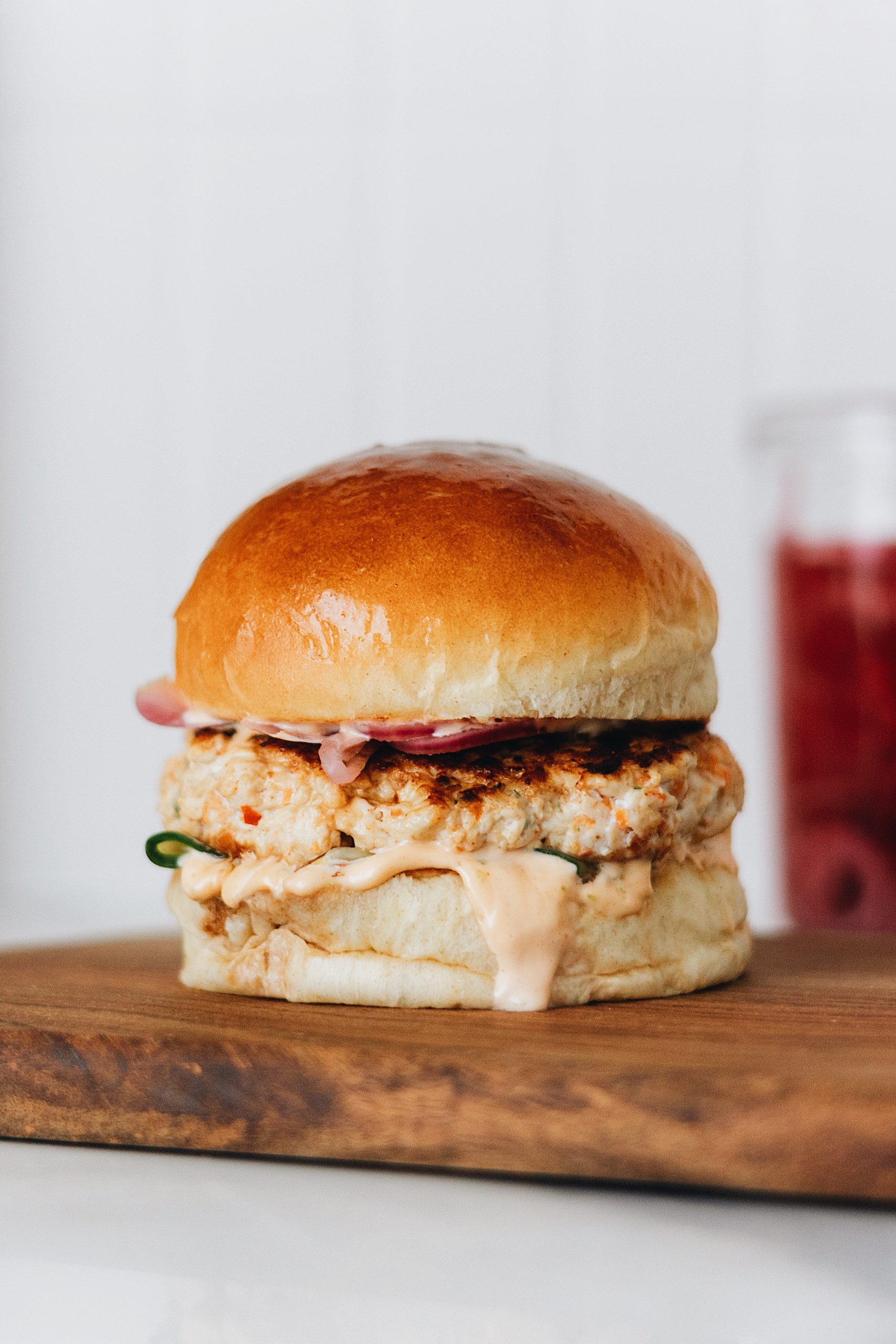 Spalmate la base dei bun con un paio di cucchiaini di salsa maionese, adagiate sopra un paio di fette di cetriolo, poi il burger, sopra un po’ di cipolla fucsia a piacere, qualche rondella di peperone jalapeno, un velo di maio anche sul pane che userete per coprire, chiudete il tutto e mangiate. Per me sono pazzeschi.