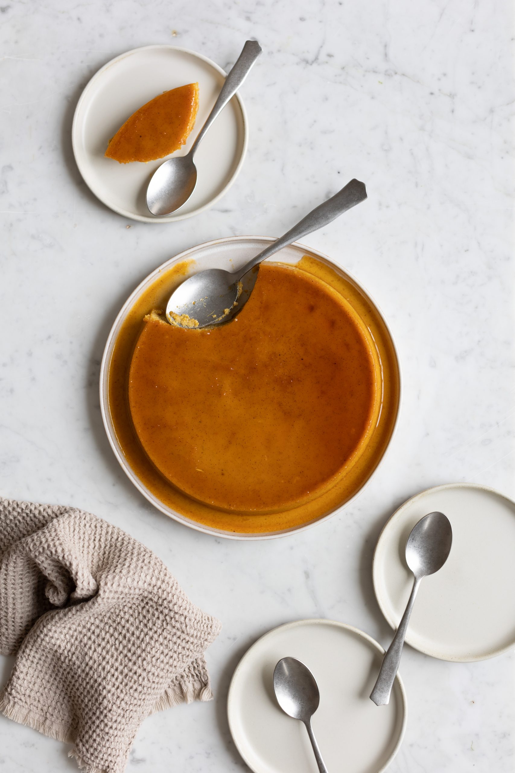 Diversi anni fa, vivevo ancora a NY, per un Thanksgiving avevo voglia di fare il creme caramel ma per renderlo un pochino di più in tema con l’occasione e la stagione, provai ad aggiungere della purea di zucca. Buonissimo!