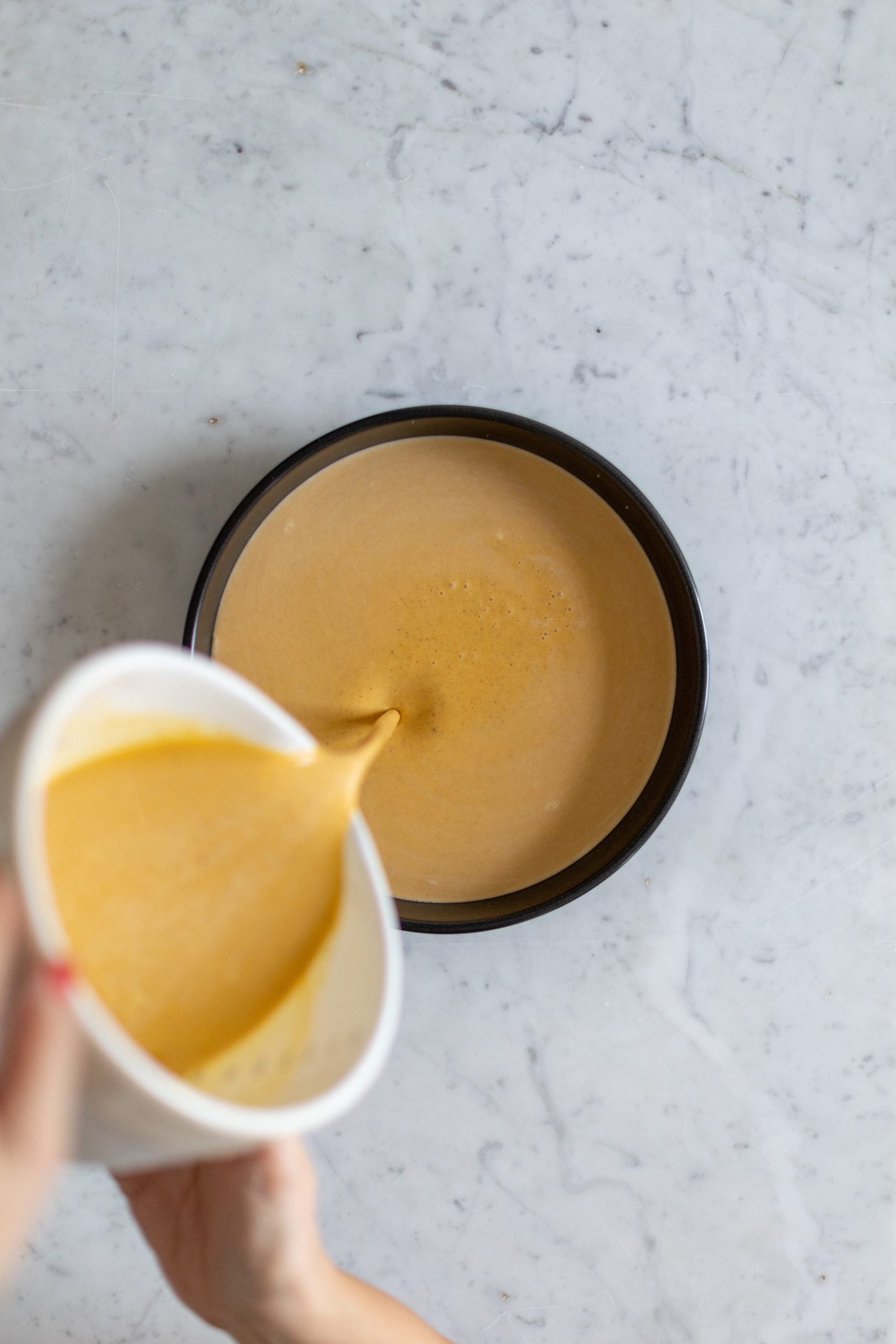 Tirate fuori dal forno la teglia con lo zucchero caramellato e versatevi il preparato.